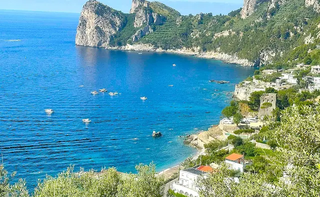 A short ten-minute nature walk downhill brings you to Marina del Cantone beach. Think of it as your daily exercize! On the path down to the beach; you’ll pass through olive groves and wildflowers. After a short trek; you’ll end up at a picturesque cove.